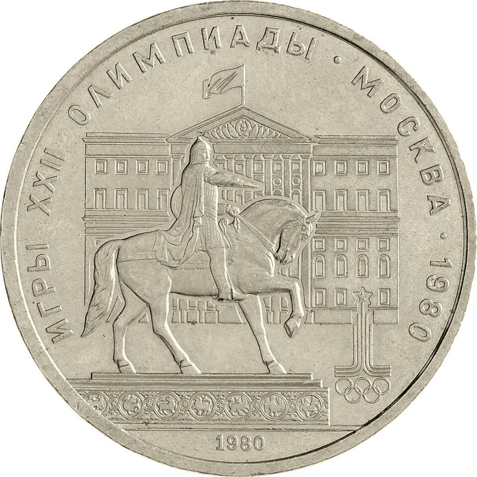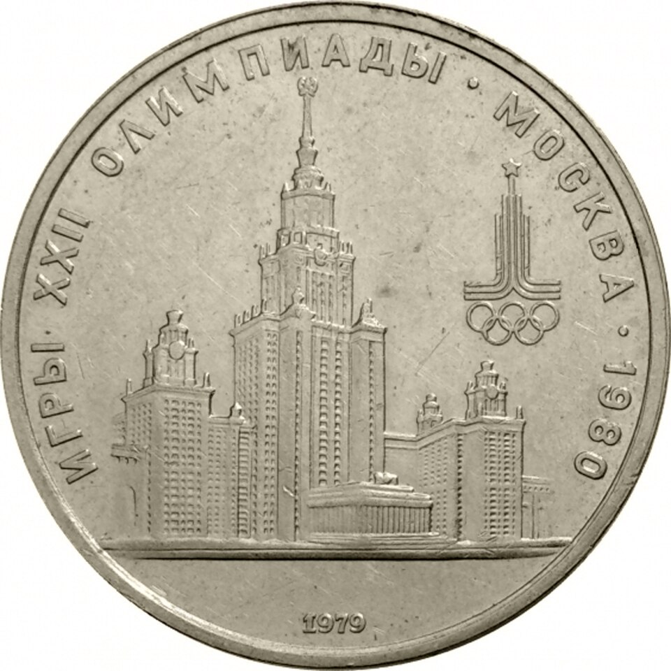 · 1 рубль (3 типа): Выпускался в 1977, 1978, 1979 и 1980 годах. На реверсе всегда был эмблема Игр (стилизованные башни Кремля и беговые дорожки с олимпийскими кольцами), но каждый год менялось изображение на аверсе: