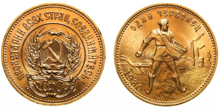 · С 1925 по 1927 год чеканились золотые червонцы с новым гербом СССР. Однако их было выпущено крайне мало (в основном для внешнего рынка), и сегодня они огромная редкость.